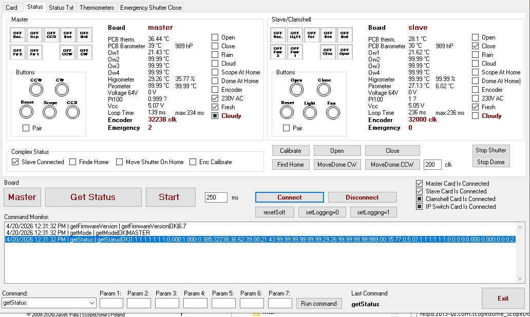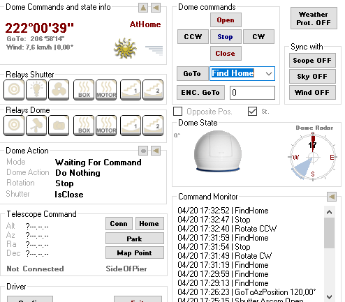 When „Find home” works (Means the Dome stops at 205°, and I have a green „At Park” and a red „At home” message), after a minute or two, the Dome indicates 222°, and only the red message „At home”.