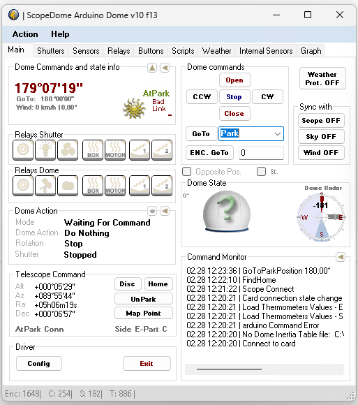 In the driver software ‘ScopeDome Arduino Dome v10f13’: